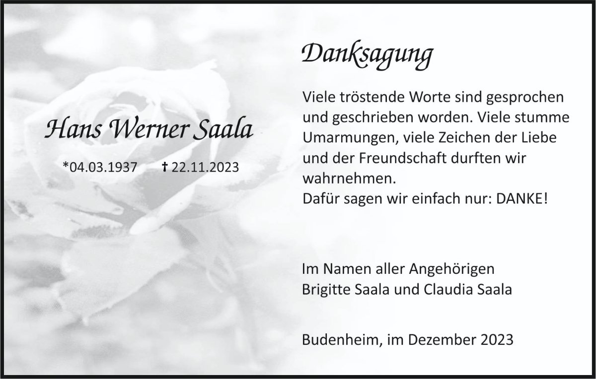 Hans Werner Saalagestorben am 22. November 2023